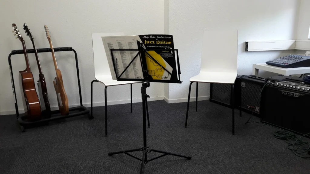 Je hoeft geen noten te kunnen lezen om te starten met gitaar spelen. Gitaar leren spelen kan op jonge maar zeker ook op oudere leeftijd. We helpen je groeien met slimme oefeningen, persoonlijke aandacht en veel plezier.